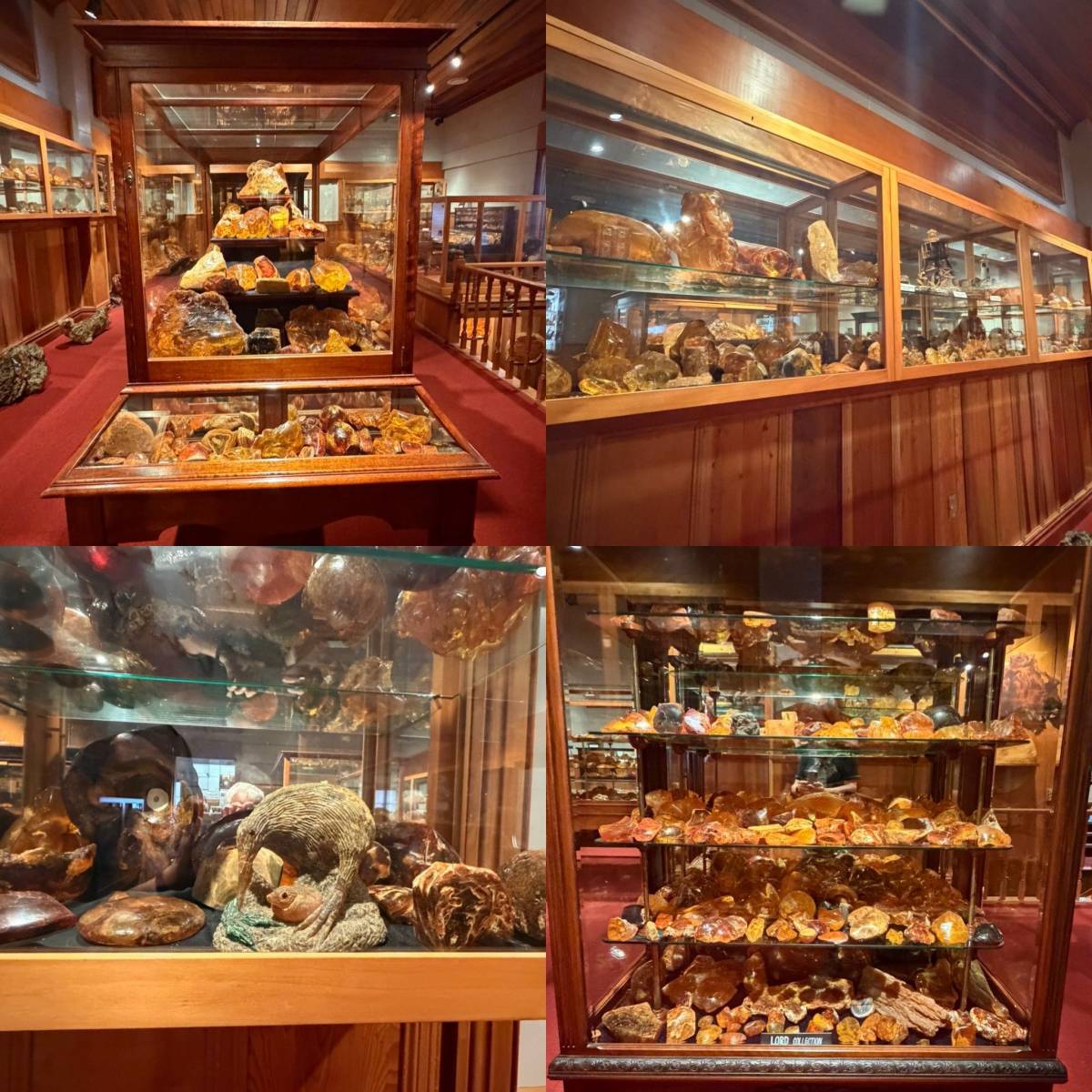 This is a collection of rare kauri gum on display at the museum.