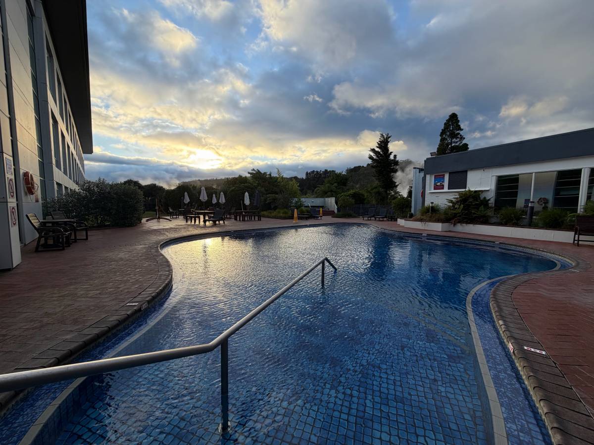 Stopped by the hotel pool on the way back from breakfast, looks very nice 😊