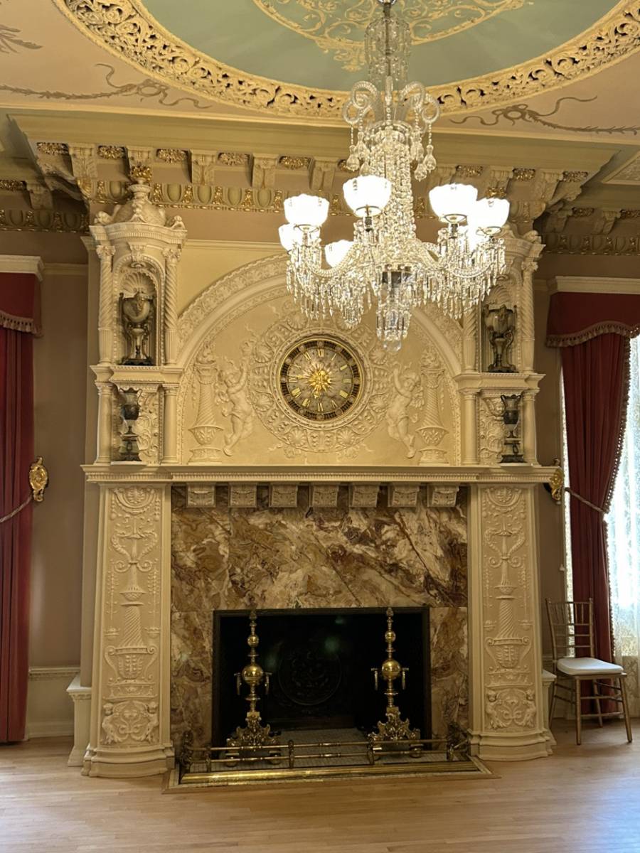 👍 Here’s the ladies parlor, which boasts the largest collection of white onyx in the western hemisphere displayed in this fireplace. The blue ceiling was also the first use of the now famous Tiffany blue. Clearly, this place is OTT!