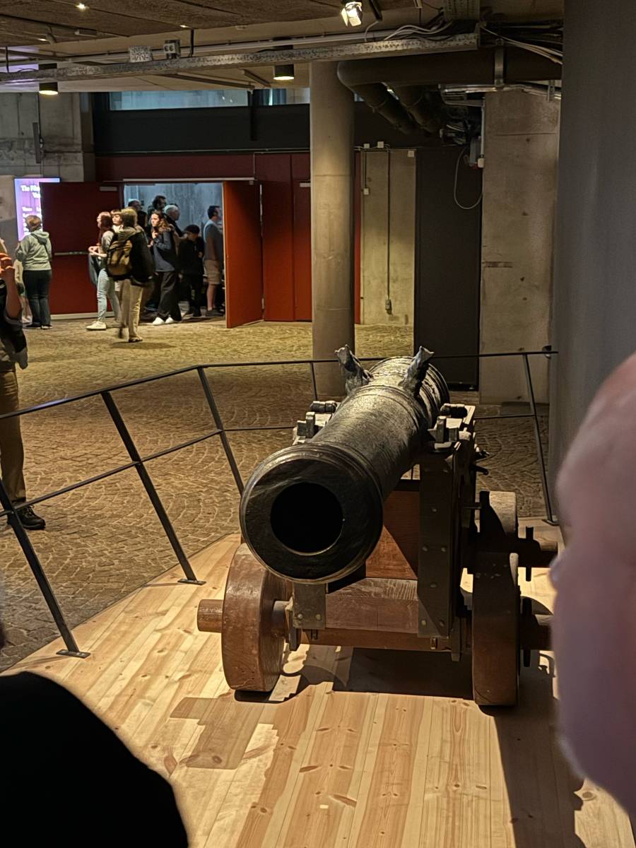 We went to the Vasa Museum. Pictured is an original cannon from the ship’s two gun decks. The Vasa was a war ship commissioned by the Swedish Royalty during a time when Sweden was at war with Poland. It was the first ship built by Sweden with two gun decks hence making it very tall. The design of the ship wasn’t wide enough to compensate for the increased height so it therefore was top heavy and unstable. It sank in the Stockholm Harbor August 10, 1628 within 15 minutes of its maiden voyage. It remained at the bottom of the harbor until the 1960s when it was found and slowly hoisted to the surface. It was painstakingly preserved and now resides in its own museum so that we can all see its grandeur. Interestingly a double gun deck sister ship Applet was commissioned and sailed for many years after the Vasa sank. It was several meters wider than the Vasa.
