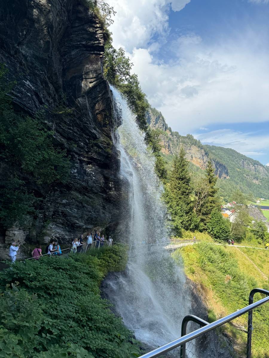 Back on the bus we soon made a stop at Steindalsfossen Falls where I walked behind and took pics. It was a little bit of a steep walk up to it. I felt it pretty good.
