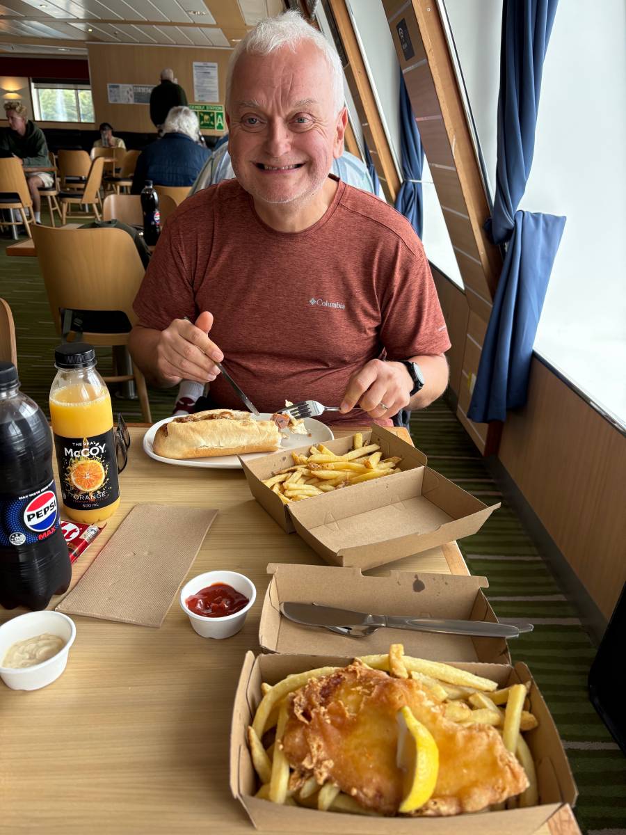 Food time, hot dog for me and fish & chips for Alison.